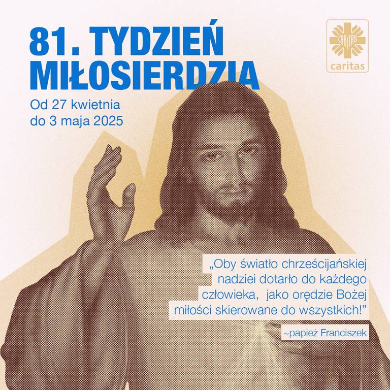 Te zadania wynikające z otrzymanego daru Bożego miłosierdzia, w sposób szczególny podejmuje Caritas, największa w naszej Ojczyźnie organizacja charytatywna prowadzona przez Kościół katolicki już ponad 35 lat. Swoją cichą, codzienną służbą, 19 tysięcy pracowników i ponad 70 tysięcy wolontariuszy z ogromnym oddaniem niosą pomoc bezdomnym, chorym, samotnym, starszym, migrantom i uchodźcom oraz wszystkim tym, którym zabrakło sił, by dźwigać ciężar życiowych trudności.